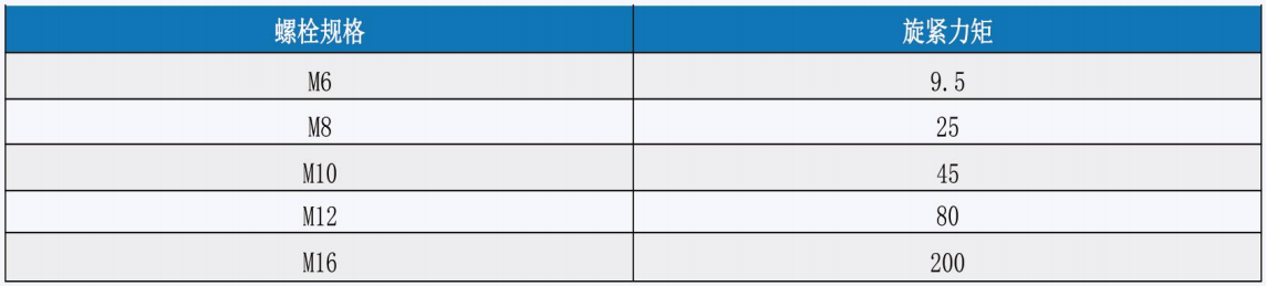 3.所有导电部分的螺栓固定方式推荐使用8.8级和张紧垫圈,其旋紧力矩推荐值见下表:
